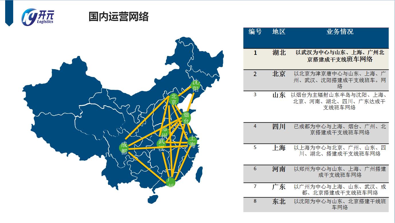 主要经营陆运运输、仓储配送、整车配送、第三方货运代理、保险等相关运输业务,公司主要以烟台、威海为主,辐射山东半岛。